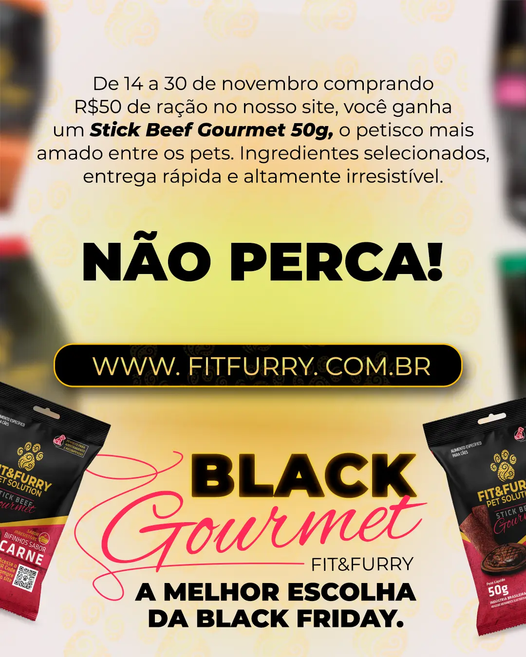 R$ 23,90 — ou 15% de desconto na recorrênciaBifinho Fit&Furry Stick Beef Gourmet 50gr – Sabor Carne